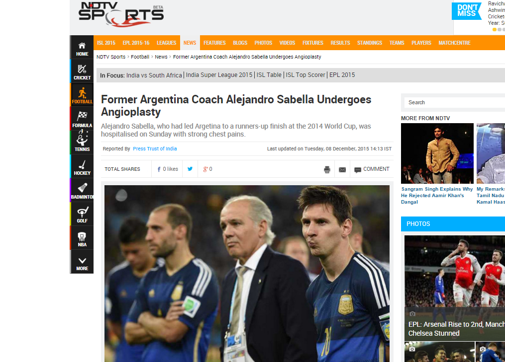 前アルゼンチン代表監督 心臓発作で倒れる